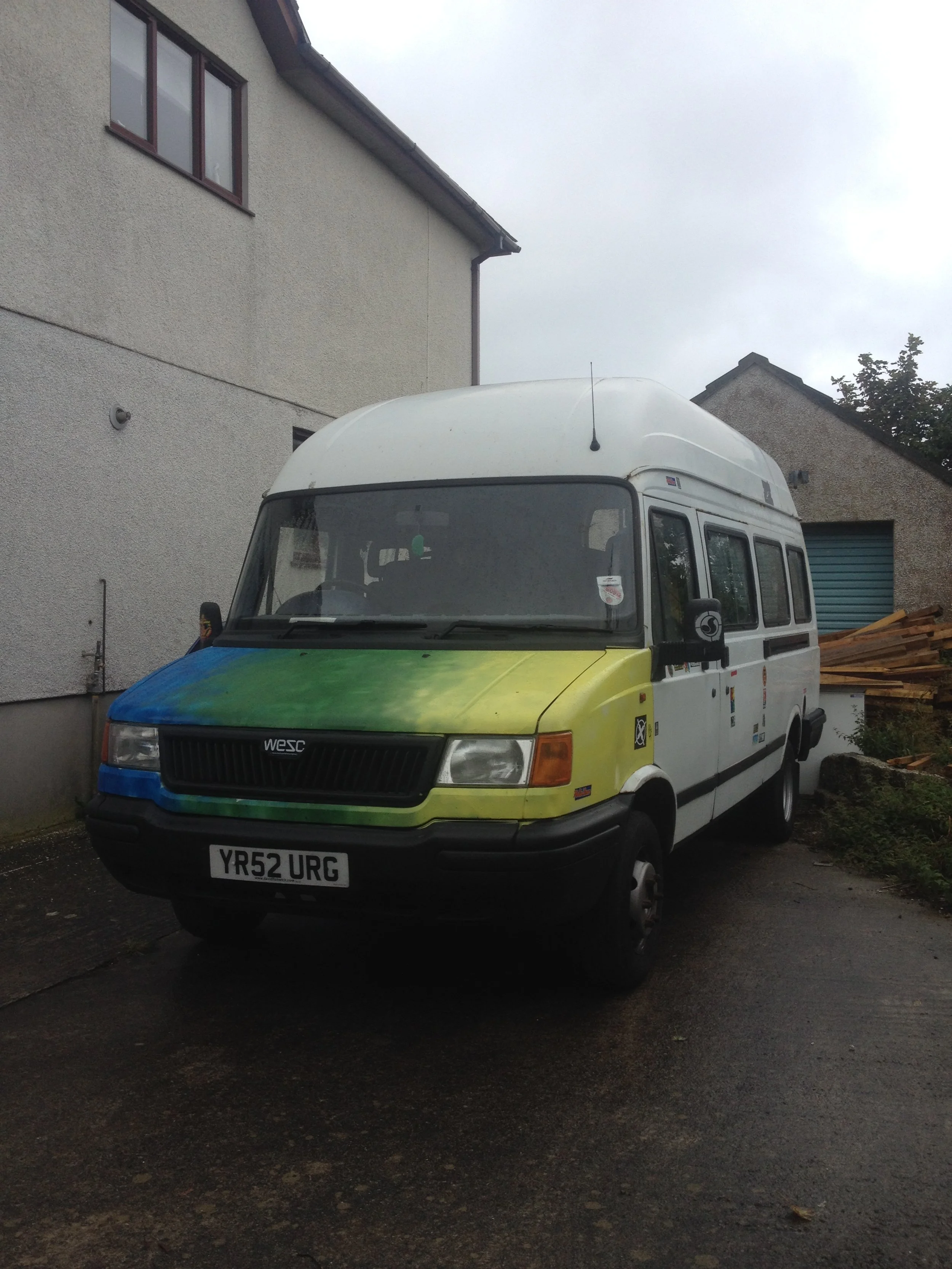 Personally we just wanted to cover up the rust-white and tie-dye spray paint that we inherited with our LDV. You can see photos of how garish our van used to look in these pictures below!